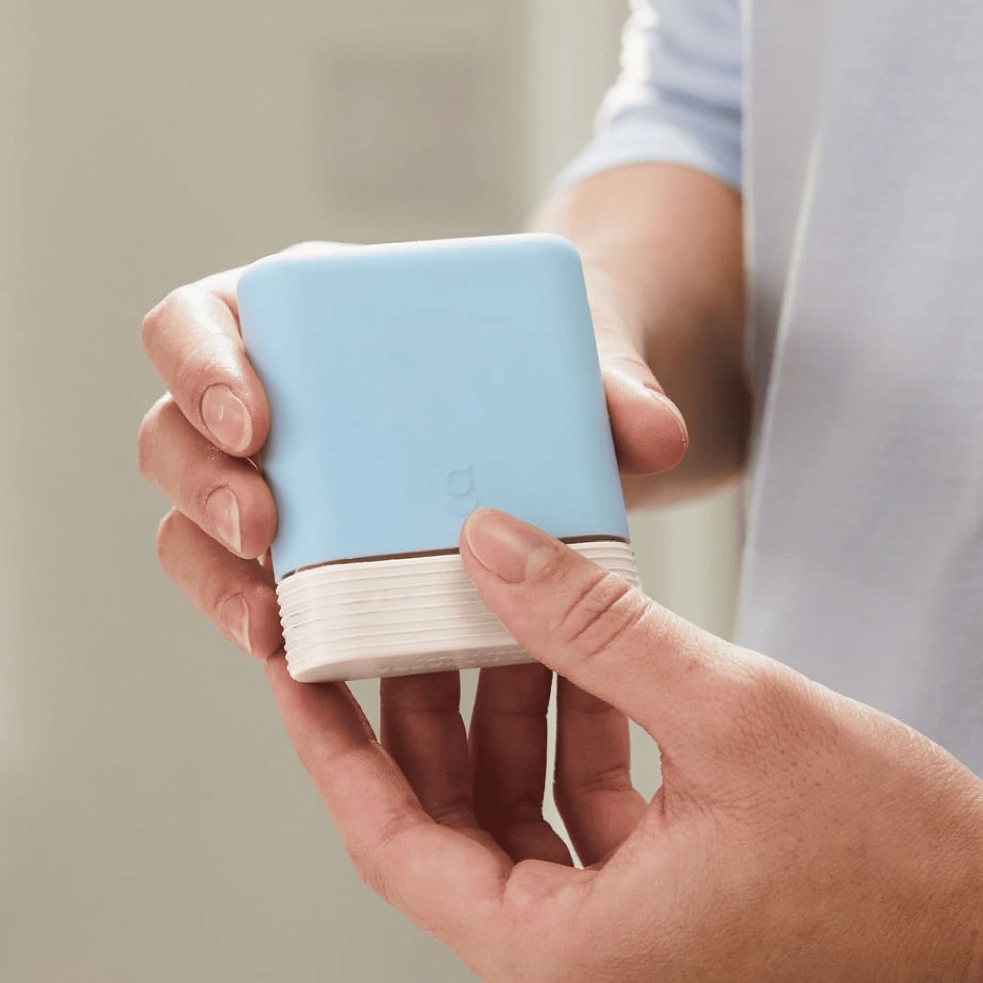 1. Place one sheet from the silicone case into the palm of your hand. (Use up to two sheets per bath for washing hair and body.)